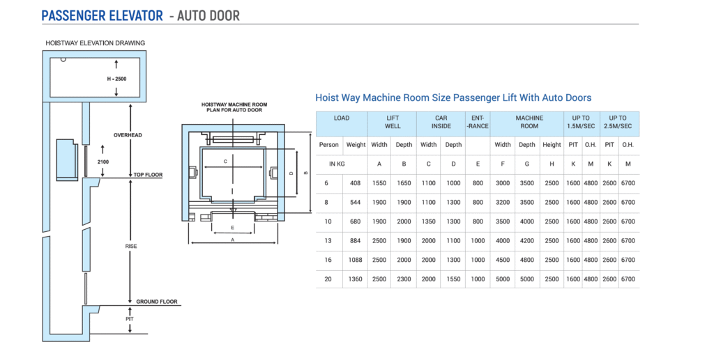Our passenger elevators support loads of up to 2,000 kg and travel heights up to 75 meters, depending on the building type and configuration. For low-rise buildings, we offer compact models with shorter travel and efficient speed options.